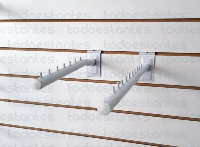 Perchero frontal inclinado para panel ranurado.  De caño pintado color blanco epoxi